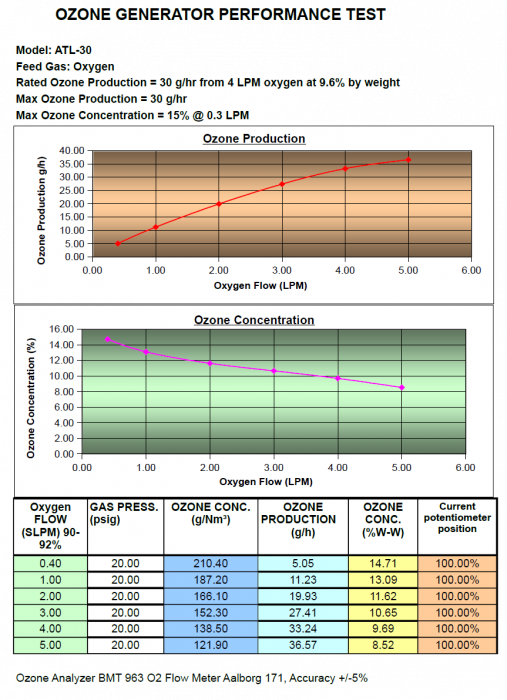 當高溶解臭氧水平需要高濃度臭氧時,ATL-30是一個很好的選擇。市場上沒有其他風冷式臭氧發生器可以提供與ATL-30臭氧發生器一樣高的臭氧濃度。