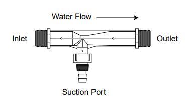 (圖3)Mazzei 1.5“或更小射流器的標準配置包括一個集成在吸入口中的止回閥。在將射流器投入使用之前,檢查并測試止回閥是否正常工作。如果沒有完整的止回閥,應考慮采用其他方法防止水通過吸入管線回流。