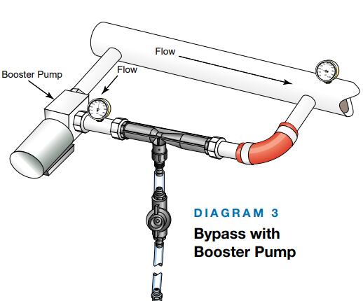 (圖1+2)當主線壓力無法降低時,可以使用小型增壓泵產生足夠的壓差來操作噴油器。