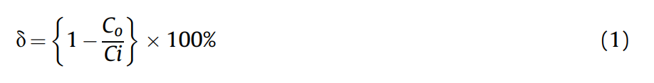 式中,Ci和Co分別為初始濃度和出口濃度(mg/L)。